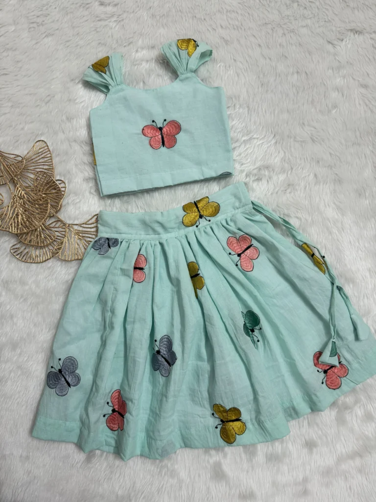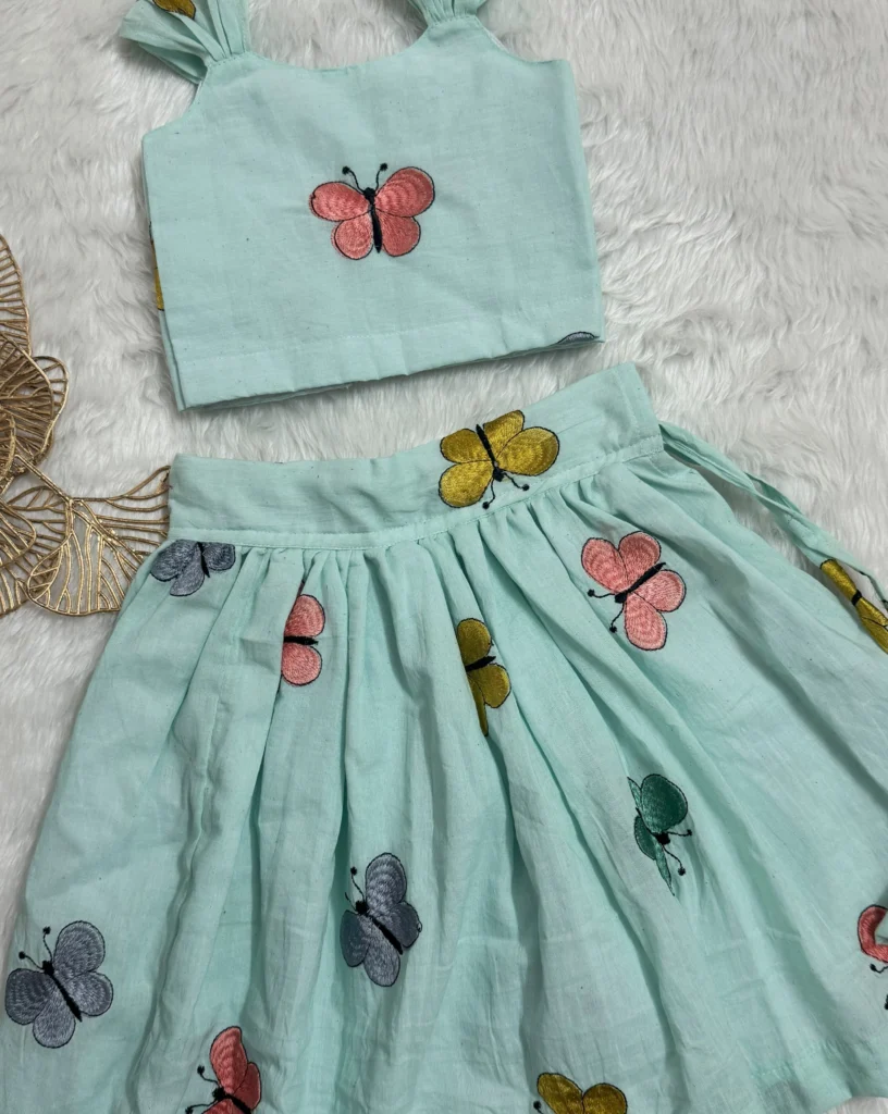 - A breezy pastel outfit with colorful butterfly prints – perfect for your little one’s playful and charming look. 🦋🌸💚