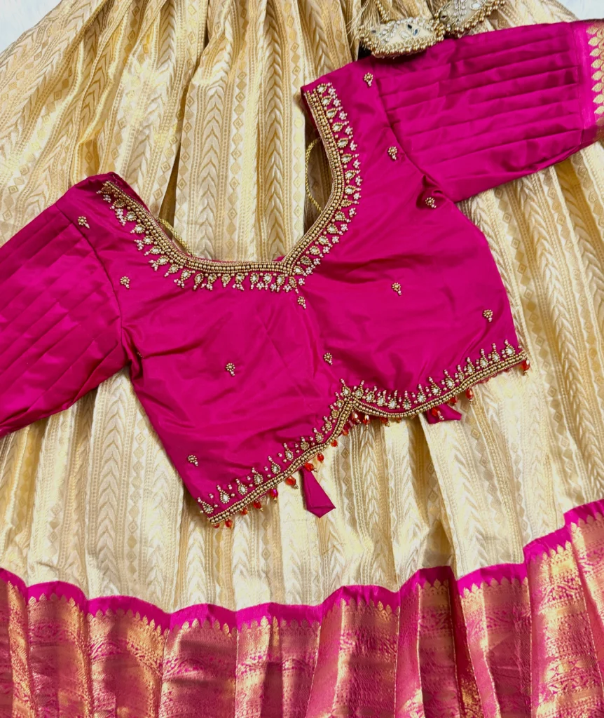 • Fabric:Semi kanchi silk.