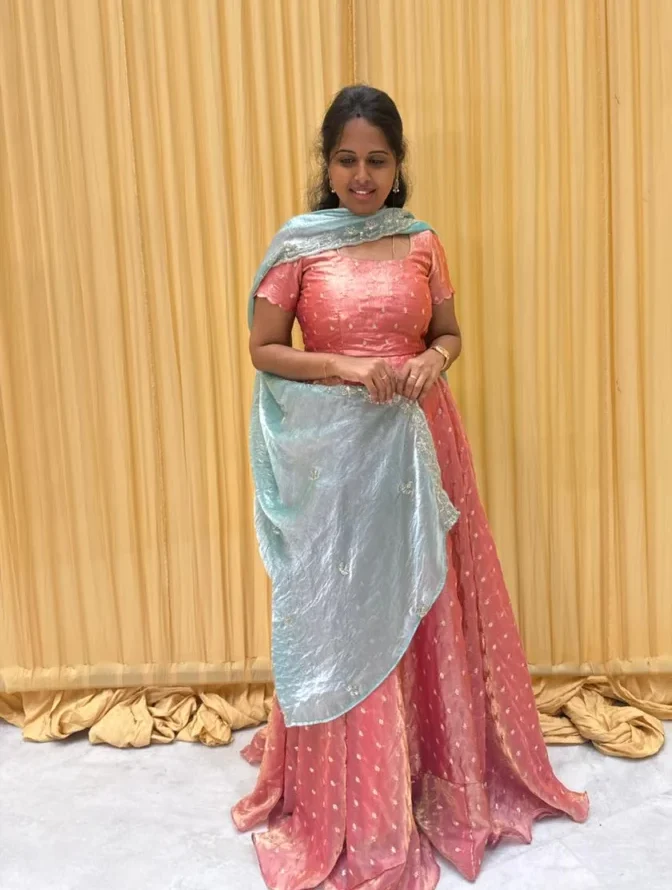 - Colour:Peach and ice blue.