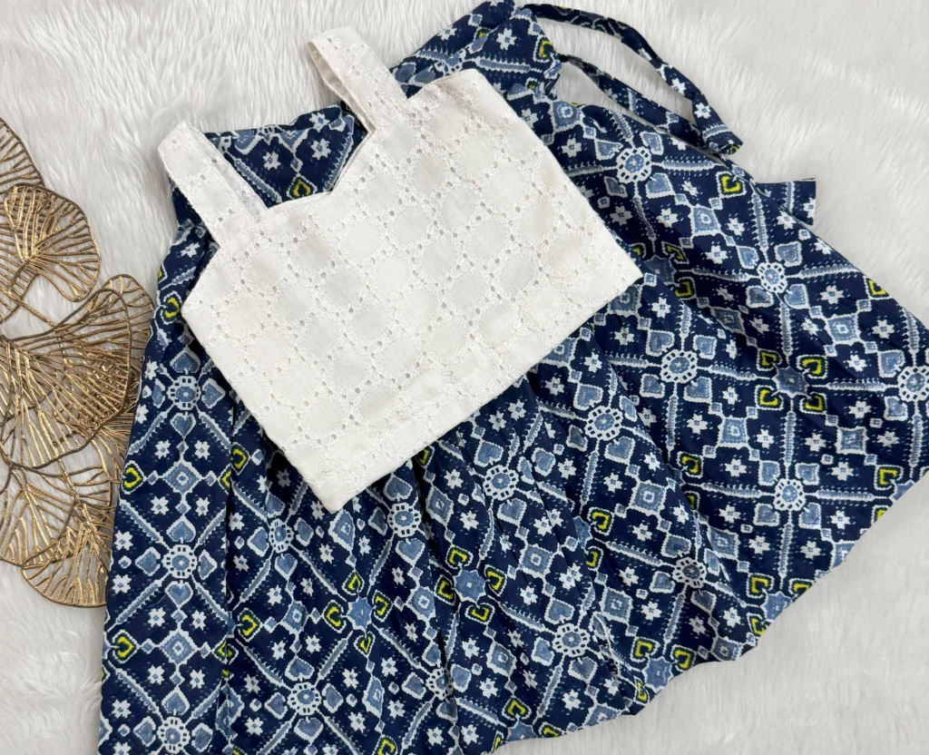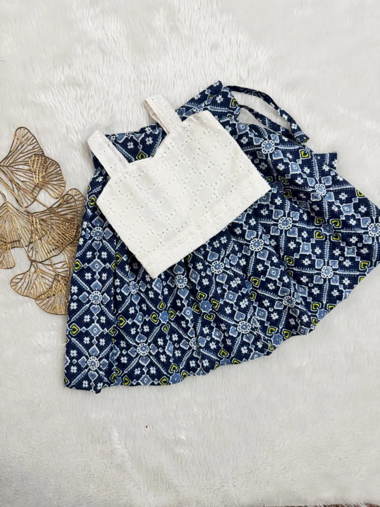 Simple yet stylish! This adorable cotton coord set features a white embroidered crop top paired with a blue printed skirt, perfect for casual outings and summer playdates. Cool, comfy, and oh-so-cute! 💙☀️👧.